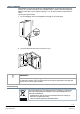 Funktion Apparatöversikt 1 Hål för ledningsdragning (upp till) för montering på plant underlag 2 [endast QSA2700] Lysdiod 3 [endast QSA2700D] Display 4 (endast för matning av givaren som används vid demo av givaren) 5 [endast QSA2700D] Närvarogivare 6 Tryckknapp 7 Hål för ledningsdragning (ner till) för montering på plant underlag 8 Hål för att fästa monteringsplatta på kapslingen 9 Luftutlopp 10 Luftintag Lysdiodens färger och mönster (QSA2700) Färg Mönster Beskrivning Grön Lyser k