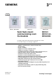 Mechanical design The thermostats consist of 2 parts: • Front panel with electronics, operating elements and built-in room temperature sensor. • Mounting base with power electronics. The rear of the mounting base contains the screw terminals. Slide the front panel in the mounting base and snap on. Operation 1 and settings 2 2 1 2 1 4 5 4 3 3 RDF301, RDF600KN 5 3 RDF301.50 RDF301.50H 1 Operating mode selector 2 Change fan operation 3 Adjust setpoint and control parameters RDF301.50 RDF301.