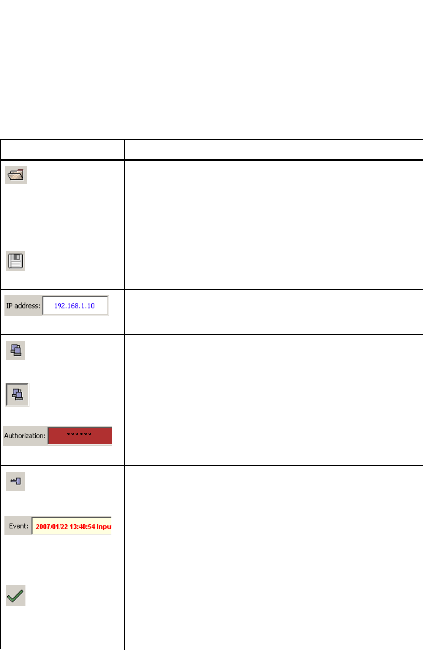 Table 7-2 Possible operations and displays in the toolbar of the Configuration Tool