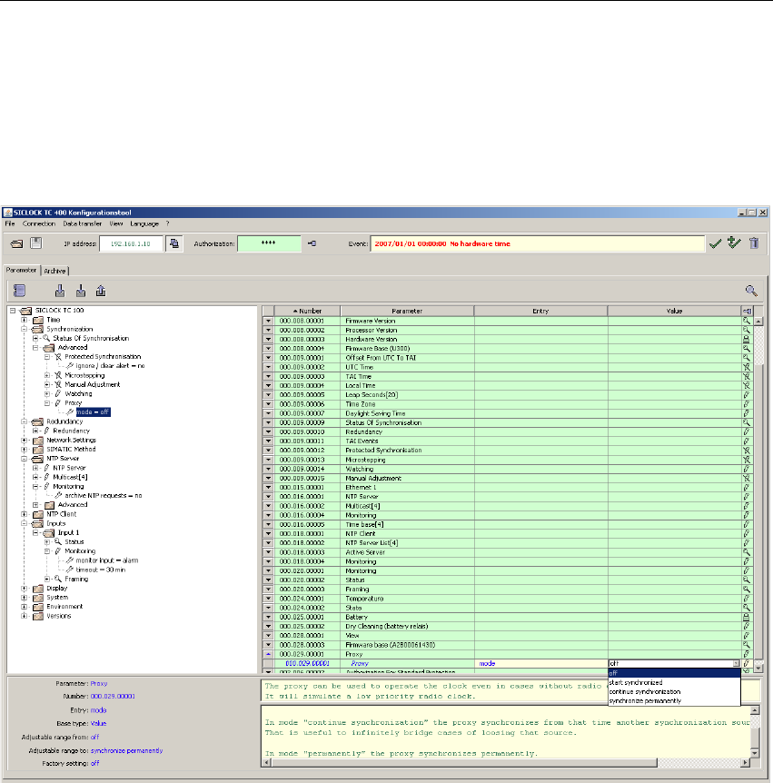 Figure 7-3 SICLOCK TC100 Configuration Tool - Parameters