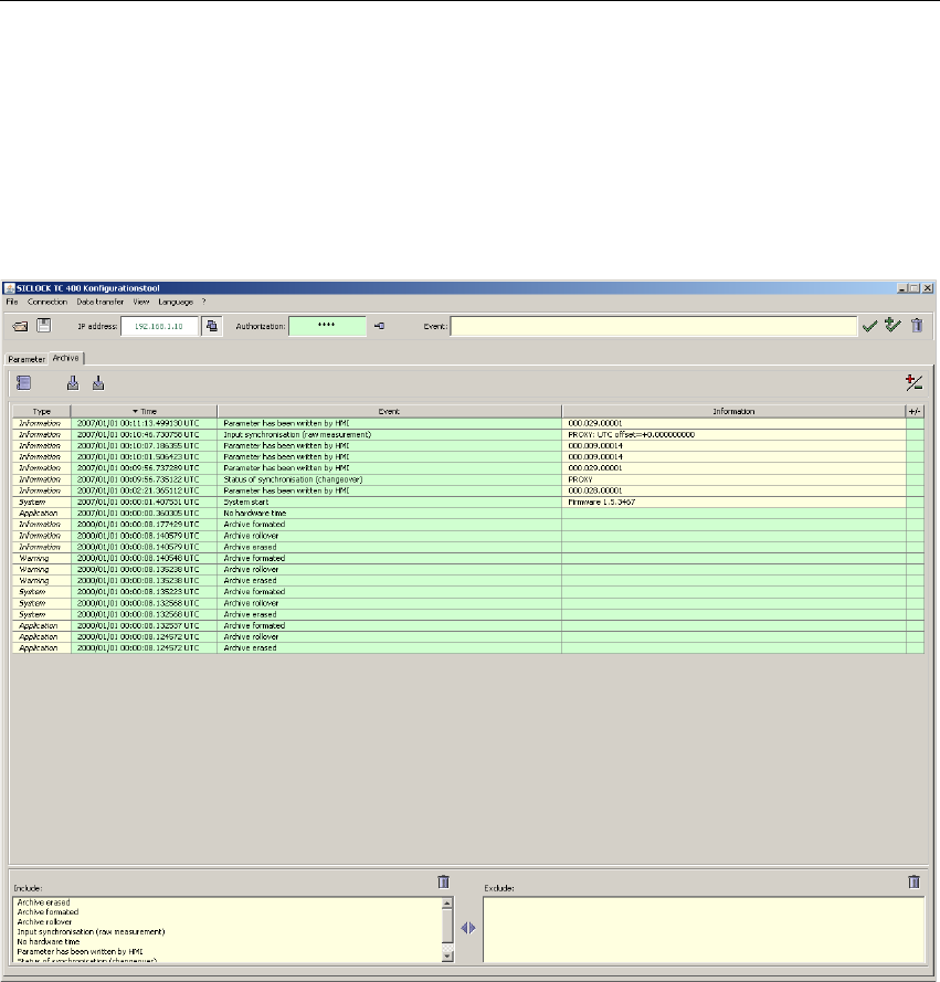 Figure 7-8 SICLOCK TC100 Configuration Tool - Archives