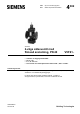 Tekniskt / Mekaniskt utförande 4382Z01 4382Z02 Ventilgenomskärning DN15 och DN 25 stänger mot trycket DN 40...150 stänger med trycket Beroende på ventilstorlek, används en styrd parabolisk, perforerad eller slitsad kägla vilken är fast förbunden med ventilspindeln. Ventilsätet är inskruvat i ventilhuset och tätat med speciellt tätningsmaterial. Principschema, konstruktionsvariationer möjliga. 4/12 Siemens Building Technologies 2-vägs sätesventil med flänsad anslutning, PN 40, VVF61..