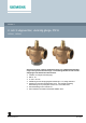Acvatix™ 2- och 3-vägsventiler, utvändig gänga, PN16 VVG44.., VXG44.. Ventilerna används i små och medelstora värme- och luftbehandlingsanläggningar som styrventil för blandnings- och fördelningsfunktioner eller som avstängningsventil. Endast för slutna kretsar. ● ● ● ● ● ● ● Siemens Smart Infrastructure Ventilhus av rödgods CC491K (Rg5) DN 15...40 kvs 0,25...25 m3/h Plantätning med utvändigt gängade anslutningar G..B, enligt ISO 228-1 Siemens kan leverera kopplingssatser ALG..