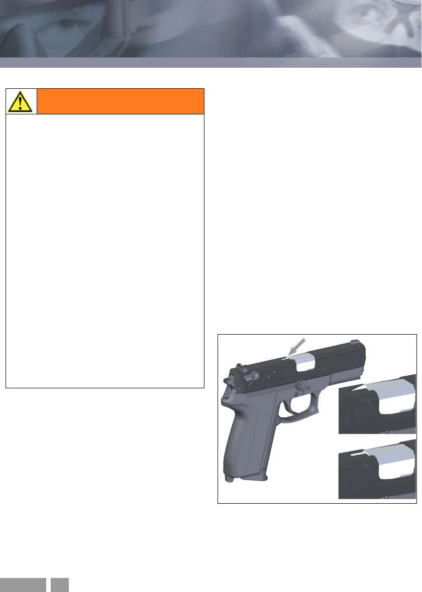 - 6.8.2 Unloading the pistol, magazine empty, slide open
