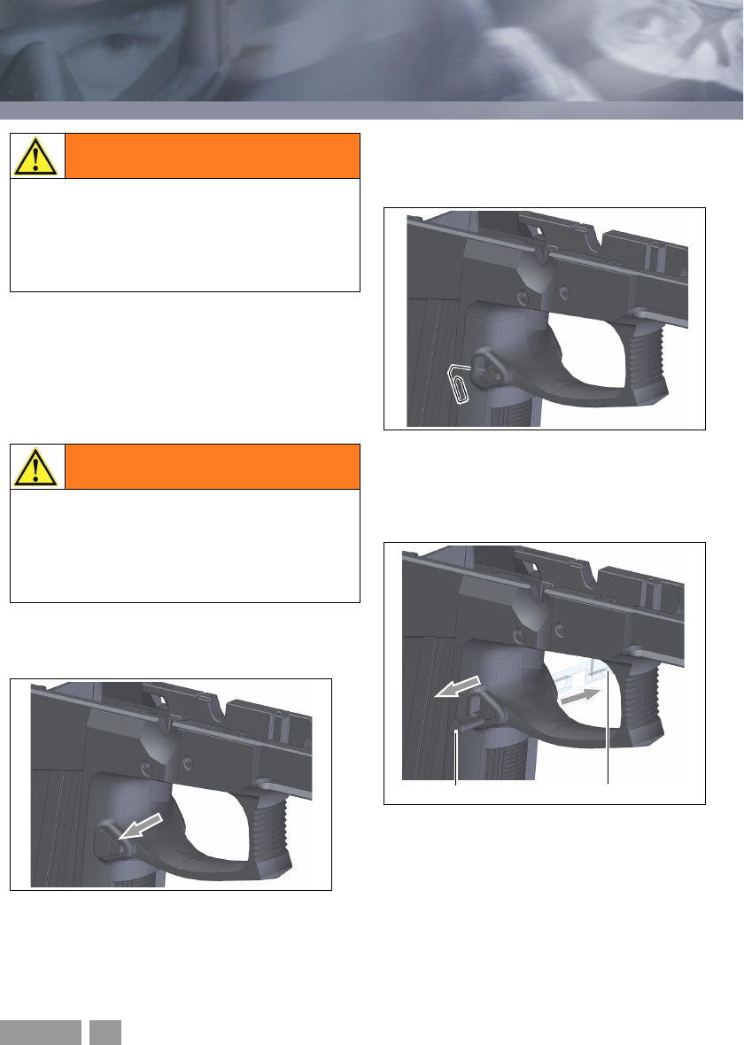 - 6. If the weapon is extremely dirty (water, sand, mud etc.), the grip plate should be removed in addition to normal cleaning (see Section 7.2.1). This way the trigger mechanism can be thoroughly cleaned.
