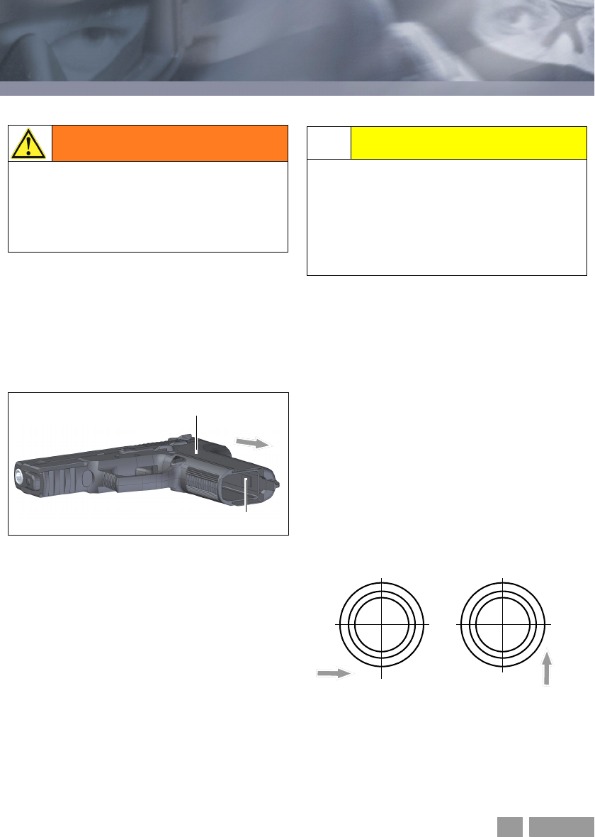 - 2. Turn the safety lever 56 all the way up to unlock the safety lock. The red dot is visible. The pistol is ready to fire in thi...