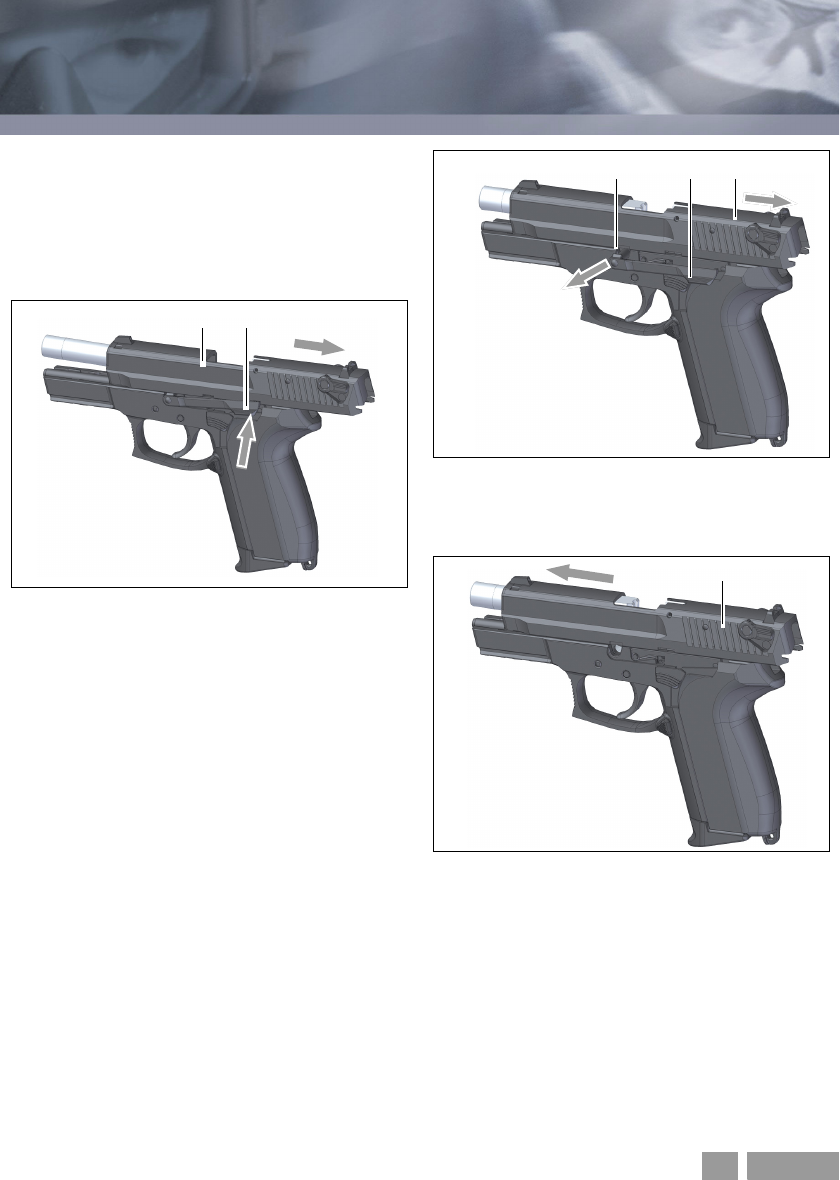 - 6.8.2 Unloading the pistol, magazine empty, slide open