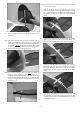f) c) Slide the cowl back into position with the four pieces of tag board on the outside of the cowl. Carefully reposition the cowl and tape it in place with low-tack masking tape. Now drill the four cowl mounting holes through the cowl. g) d) Remove the tape, cowl, and tag board from the fuselage. Screw each of the four cowl screws into a hole and then remove the screws. e) Add a drop of thin CA to each of the four cowl mounting screw holes to harden the holes.