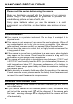 SAFETY PRECAUTIONS The AC Adapter is designed for use with this product only. Do not use it with any other appliance. Doing so may cause overheating, fire, electric shock or injury. If the adapter is emitting smoke, generating a strange odor or making an abnormal noise, while in use, disconnect the power plug from the outlet immediately. Otherwise, fire or electric shock may result. If water or a foreign object gets into the adapter, unplug from the AC outlet immediately.