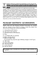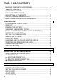 TABLE OF CONTENTS PACKAGE CONTENTS / ACCESSORIES .............................................. 2 TABLE OF CONTENTS .......................................................................... 3 SAFETY PRECAUTIONS ....................................................................... 6 HANDLING PRECAUTIONS ................................................................... 9 DESCRIPTION OF THE PARTS ........................................................... 11 COLOR LCD MONITOR INDICATION ..................