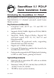 SoundWave 5.1 PCI-LP Quick Installation Guide Introducing the SoundWave 5.1 PCI-LP The SoundWave 5.1 PCI-LP transforms your PC into a high-definition 5.1 channel surround sound home theater system. Key Features and Benefits • • • • • • • Compliant with AC'97 rev. 2.3 and PCI 2.2 specifications Supports 24-bit/96kHz digital and 20-bit/48kHz analog connections Supports Dolby Digital/Dolby Digital EX surround sound, EAX 1.0, 2.0, A3d 1.