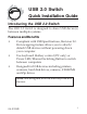 USB 2.0 Switch Quick Installation Guide Introducing the USB 2.0 Switch The USB 2.0 Switch is designed to share USB device(s) between multiple systems. Features and Benefits • • • Compliant with USB Specifications, Revision 2.0.