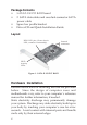 Package Contents • • • • SATA II-150 PCI RAID board 2 SATA data cables and one dual-connector SATA power cable Spare low profile bracket Driver CD and Quick Installation Guide Layout HDD LED pins (Front chassis LED; connects horizontally) Internal connectors HDD Activity LEDs Figure 1. SATA II-150 PCI RAID Hardware Installation General instructions for installing the card are provided below.