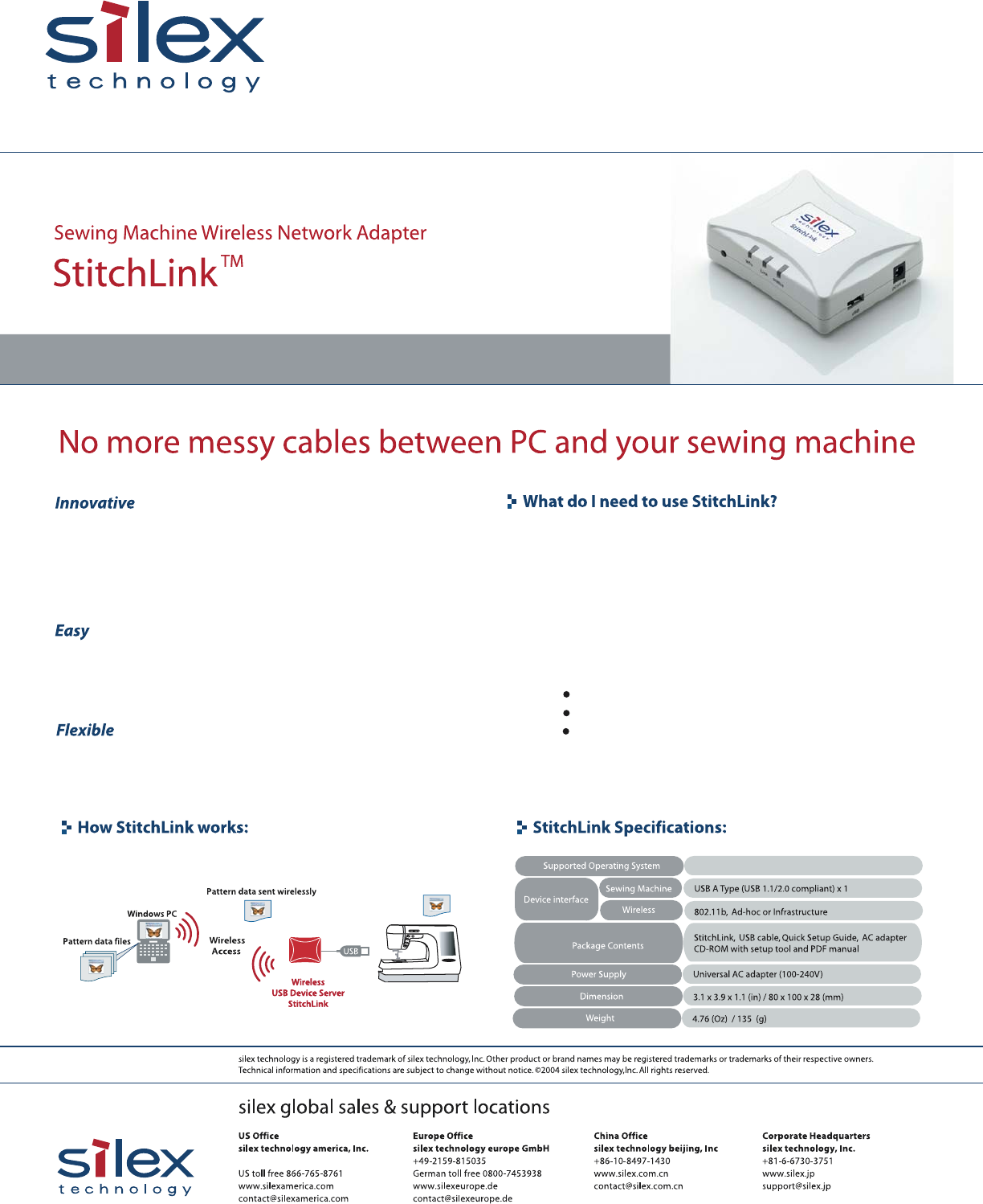 Sewing Machine Wireless Network Adapter Specification Sheet