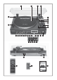 Geräteübersicht DE AT CH Siehe hierzu Abbildungen auf der Ausklappseite. Abdeckhaube Plattenteller Gegengewicht für den Auflagedruck Anti-Skating-Drehknopf Tonarmhebel Sicherungsbügel für den Tonarm Tonarm Drehzahlwahlschalter Einstellregler PITCH ADJ.