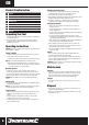 NL Productbeschrijving 1 Schroef bit houder 2 Spanhuls 3 Richtingschakelaar 4 Accu 5 Indicator accuniveau 6 Trekker 7 LED-lampje 8 Oplader Het uitpakken van uw gereedschap • Pak uw toestel / gereedschap uit. Inspecteer het en zorg dat u met alle kenmerken en functies vertrouwd raakt. • Controleer of alle onderdelen aanwezig zijn en in goede staat verkeren. Als er onderdelen ontbreken of beschadigd zijn, zorg dan dat deze vervangen worden voor u dit toestel / gereedschap gebruikt.