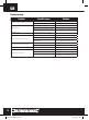 I Risoluzione dei problemi Problema La spia rossa di carica non si accende e la batteria (10) non si carica La batteria ha bassa capacità Trapano non può essere acceso (interruttore a grilletto (8) non si muove) Trapano non si avvia quando il grilletto è depresso Possibile Causa Soluzione Batteria non inserita completamente Pulire presa del connettore batteria (11) Carica batterie (13) non alimentato Ricontrollare il collegamento alla rete La batteria non viene caricata completamente Caricare la
