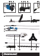 GB Product Familiarisation 8 1 Chain Oil Reservoir 2 Chainsaw Lubrication Guard 3 Guard Retaining Bolt 4 Ignition Switch 5 Throttle 6 Safety Switch 7 Handle 8 Drive Unit Coupling 9 Locking Pin Cover 10 Locking Clamp 11 End Cover 12 Air Filter 13 Starter Handle 14 Fuel Tank 15 Choke Lever 16 Idling Adjustment Screw 17 Primer 18 Fuel Lines 19 Trimmer Guard 20 Adjustment Levers (Hedge Trimmer) 21 Trimmer Spool 22 Fuel Mixing Bottle 23 Hedge Trimmer 24 Brush Cutt