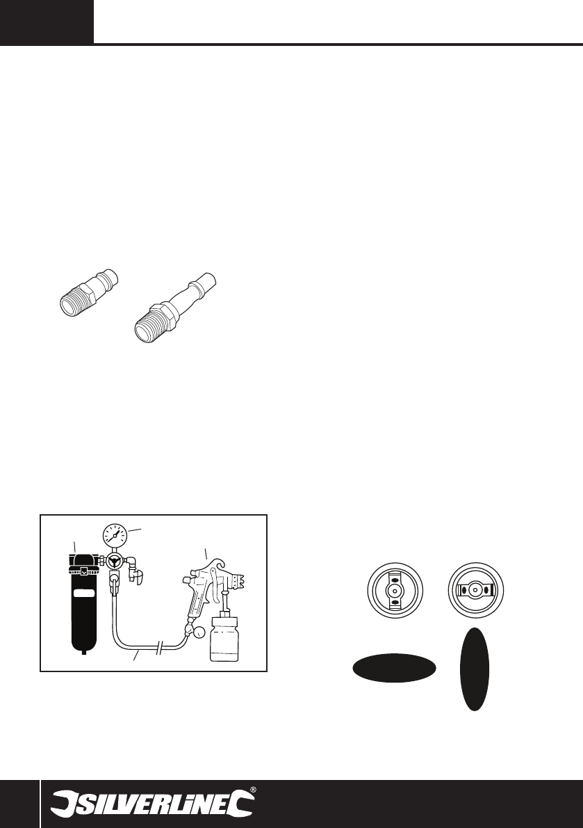 • Selecteer de koppeling, passend bij het te gebruiken luchtsysteem en instaleer als