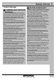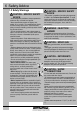 Safety Advice 1.2 Safety Warnings CAUTION – SPECIFIC SAFETY ADVICE • Avoid dangerous conditions. Always operate this product on dry, solid and level ground. • Never operate this product on slippery, wet, muddy, or icy surfaces. The operating area should be free from any obstructions. There should be plenty of room for handling, and the operator should stay alert at all times. • Do not use this product in wet or damp areas or expose it to rain.
