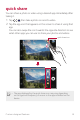 quick share You can share a photo or video using a desired app immediately after taking it. , then take a photo or record a video. 1 Tap 2 Tap the app icon that appears on the screen to share it using that app. You can also swipe the icon towards the opposite direction to see what other apps you can use to share your photos and videos. quick share icon A The app displayed by the quick share icon may vary, depending on the type and frequency of access to the apps installed on the device.