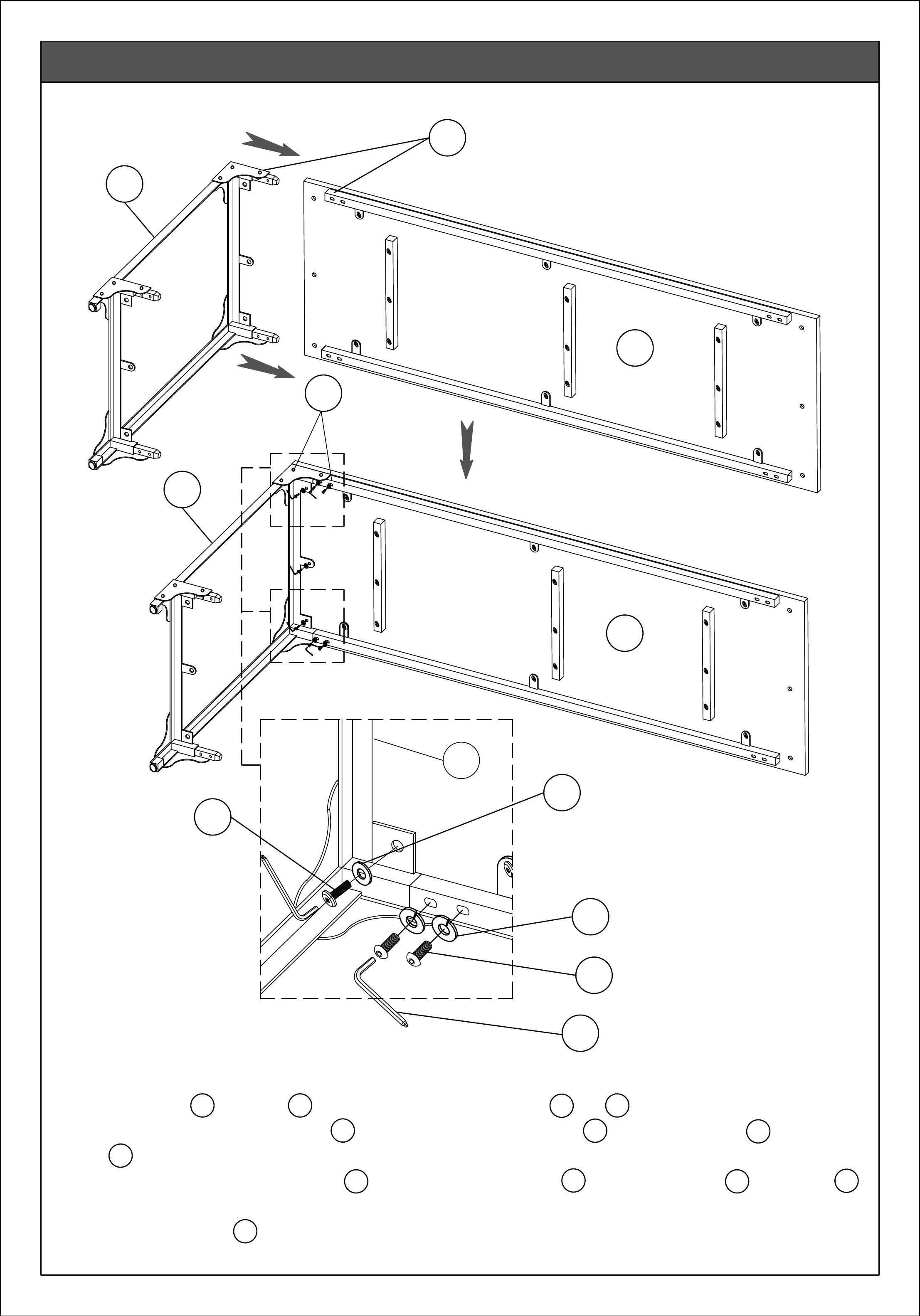 3. Use three Allen Key Bolts 1 and three Washers 4 to secure Top A and Leg B