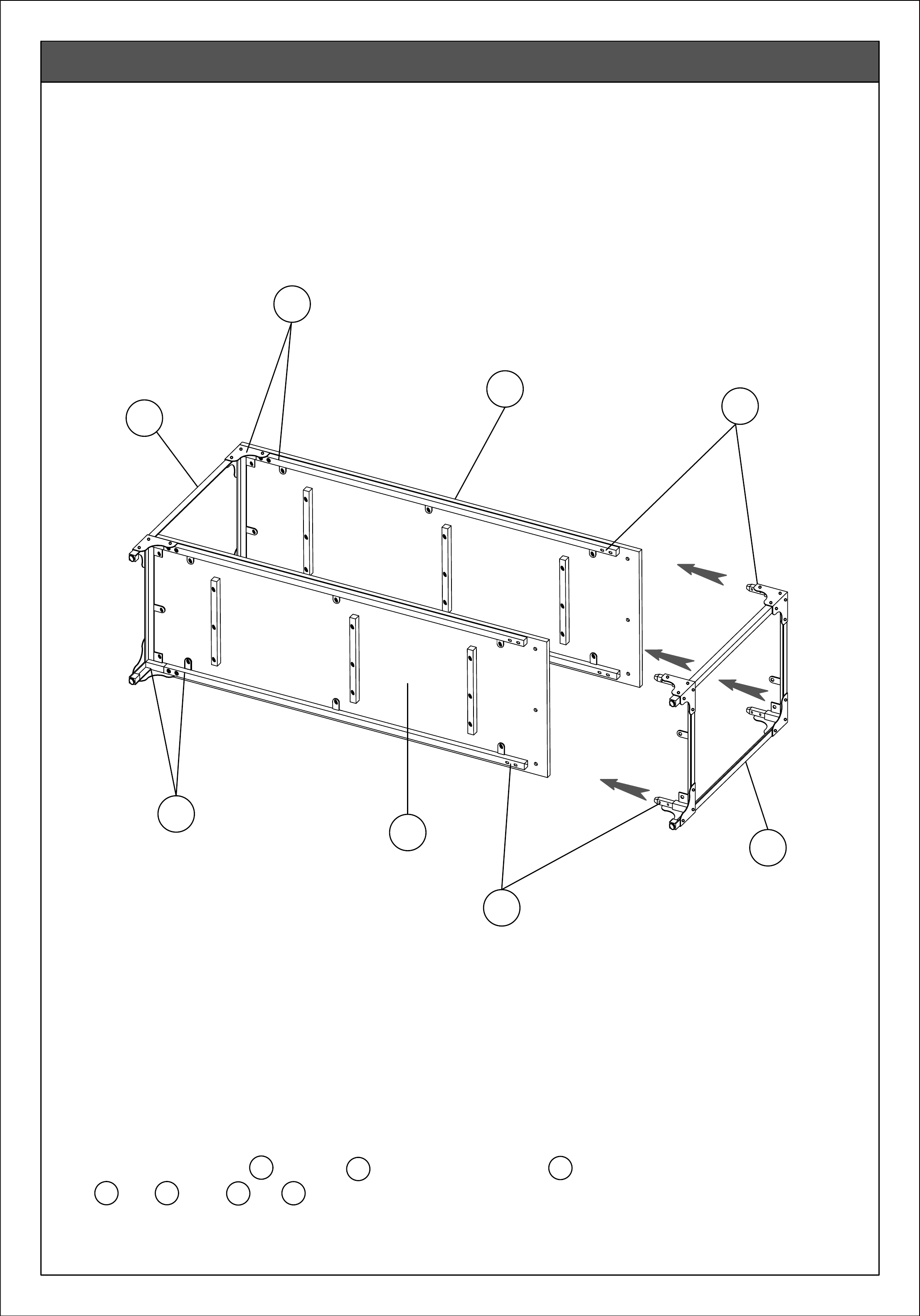 Align other Leg B to Top A and Bottom Shelf C by matching the letters