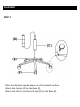 ASSEMBLY STEP 1 Place the Base (E) upside down on a flat smooth surface. Attach the Casters (F) to the Base (E). Attach Gas Lift (C) and Gas Lift Cap (D) to the Base (E).