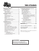 Table of Contents Safety Rules & Information.................................2 Identification Numbers........................................5 Troubleshooting, Adjustments & Service .......27 Troubleshooting the Tractor ..................................27 Troubleshooting the Mower ..................................28 PTO Clutch Adjustment ........................................29 Brake Linkage Adjustment ....................................29 Tractor PTO Belt Replacement .............................