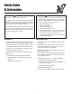 Safety Rules & Information WARNING WARNING This unit is a “single-stage” snowthrower. To avoid serious injury, do not put your hands into the auger housing or discharge chute. If auger stalls or chute becomes plugged, use the following procedure to remove objects or clear the chute: The auger feeds the snow back into the housing and throws the snow out the discharge chute. If bodily contact is made with the auger or impeller when they are rotating, severe personal injury will occur. 1. 2. 3. 4. 5.