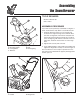 Assembling the Snowthrower TOOLS REQUIRED • Socket or Wrench Set A • Pair of Pliers ASSEMBLY PROCEDURE C If your unit was not previously assembled, see Figures 1 and 2, and follow the steps below to assemble the unit: D 1. Install the discharge chute on to the rotating ring located on the auger housing. Secure with the three 5/16 inch carriage bolts, flat washers and nylok nuts found in the parts bag (the bolt heads go to inside of of the rotating ring, with washers and nuts on the outside).