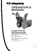 OPERATOR’S MANUAL Large Frame Snowthrower 860 Series Large Frame Snowthrower Mfg. No. 1693984 1693985 1694242 Description 860M, 8HP Snowthrower 860M, 8HP Snowthrower (Export) 860E, 8HP Snowthrower 960 Series Large Frame Snowthrower Mfg. No.