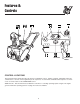 Features & Controls All Models Electric Start Models CONTROL LOCATIONS The information below briefly describes the function of individual controls. Starting, stopping, and driving require the combined use of several controls applied in specific sequences. To learn what combination and sequence of controls to use for various tasks see the OPERATION section. NOTE: Throttle - This snowthrower does NOT have a throttle for controlling operating speed of engine.