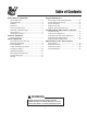 Table of Contents Safety Rules & Information Regular Maintenance General Operation ..................................................2 Slope Operation ......................................................2 Children...................................................................3 Emissions................................................................3 Service & Maintenance ...........................................3 ANSI B71.3-1995 Warnings ....................................4 Safety Decals .......