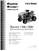 Parts Manual REGENT / 500 / 2500 SERIES LAWN TRACTORS & MOWER DECKS 12.5HP GEAR TRACTORS 36” MOWER DECKS Mfg. No. Description 1692366 1692410 1692401 1692405 1692409 1692493 Regent 12.5HP Gear Regent 12.5HP Gear (Export) 512G, 12.5HP Gear 2513G, 12.5HP Gear 36” Mower Deck 36” Mower Deck 12.5HP HYDRO TRACTORS Mfg. No. Description 1692403 1692407 1692412 1692495 Regent 12.5HP Hydro Regent 12HP Hydro (Export) 512H, 12HP Hydro 2512H, 12HP Hydro Rev.