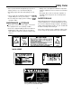 Safety Rules l l l l Never operate machine at high transport speeds on slippery surfaces. Use care when backing up. l Disengage auger drive when transporting or not in use. l Never operate the snowthrower without good vrstbrlrty or light. Always be sure of your footing. Safety warning decals are placed at strategic locations on the snowthrower as a constant reminder to the operator of the most important safety precautions.