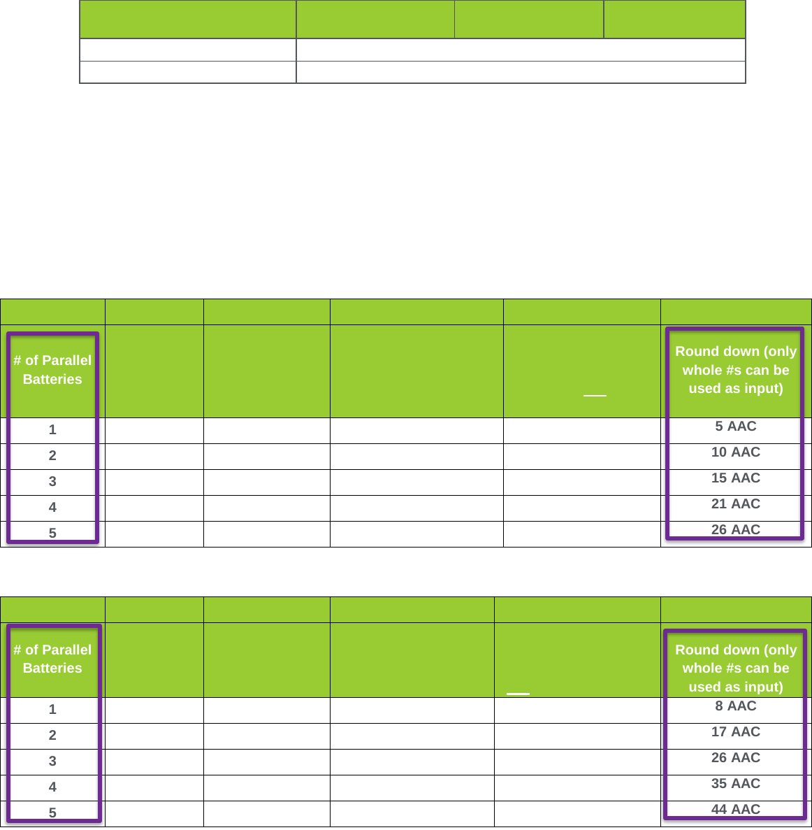 Table 6.0 – Conversion from DC to AC Limit for 1 to 5 PHI 3.8 kWh 24V Batteries (45A DC limit per PHI battery)