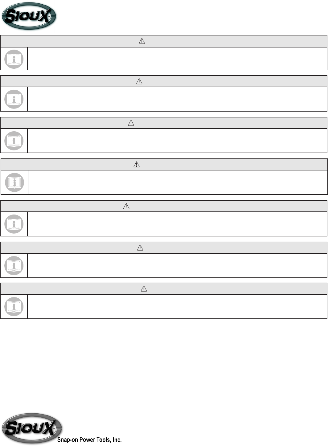 250 Snap-on Drive • PO Box 1596 • Murphy, NC 28906 • USA • Phone: 828-835-9765 •www.siouxtools.com