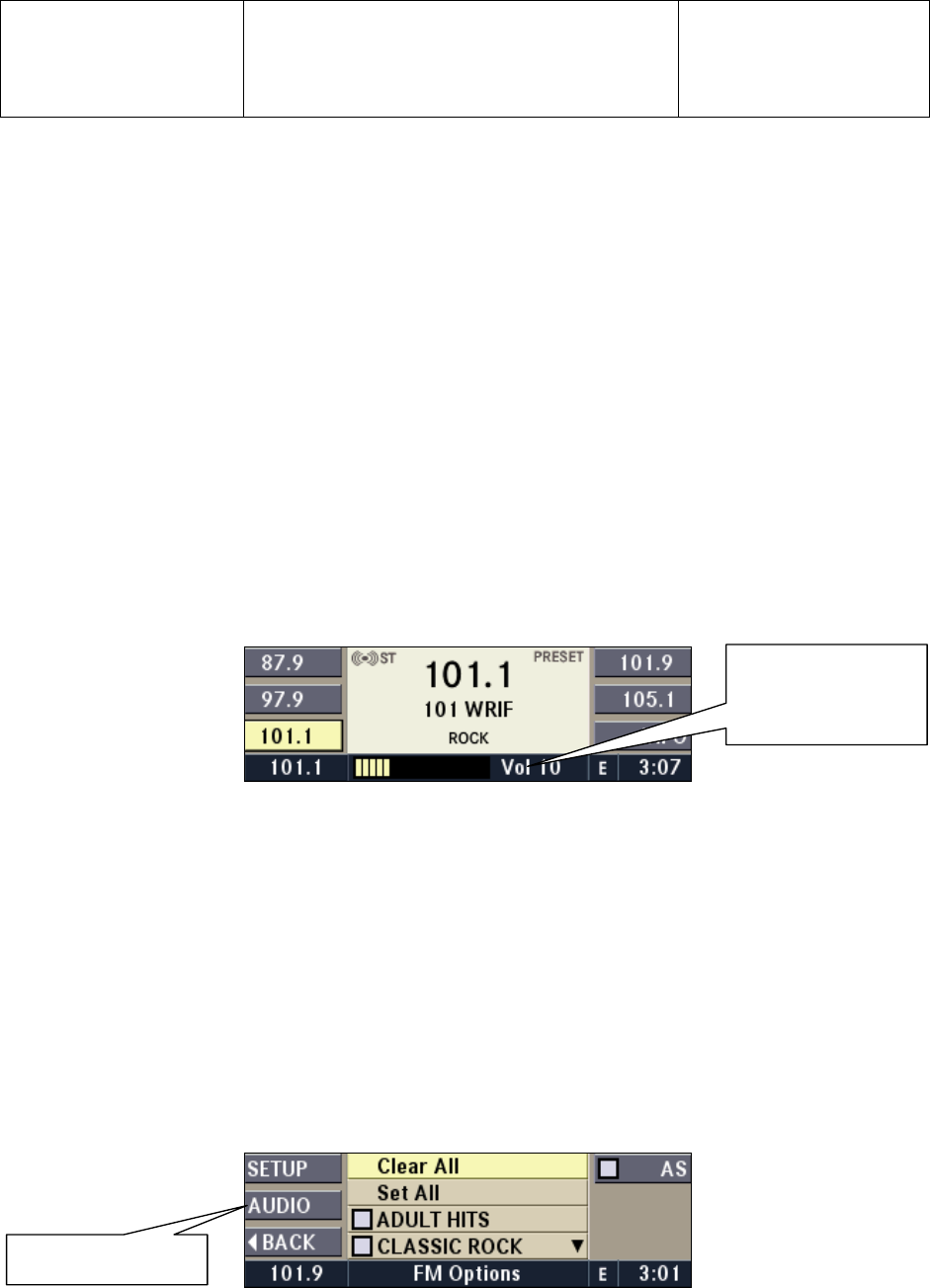 Press the AUDIO multifunction button to access the Audio Settings Menu.
