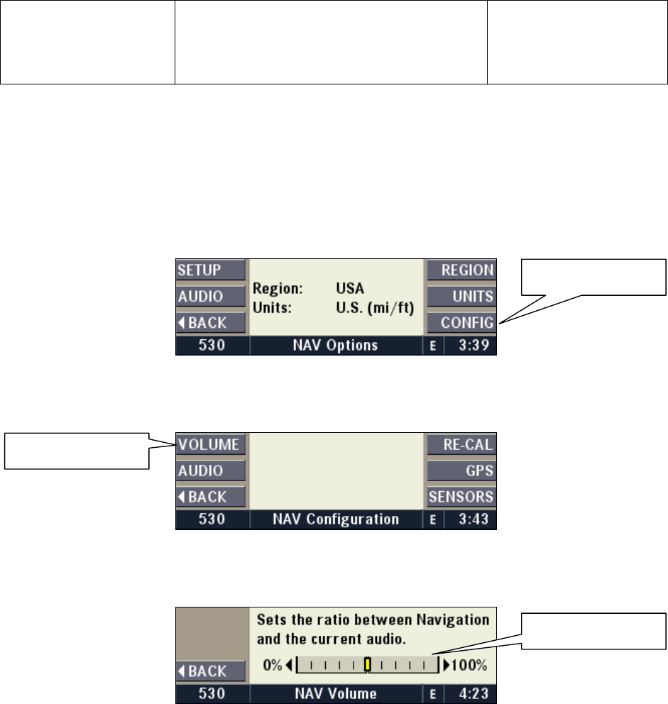 Exit the Navi gation Volum e Menu by p ress ing the NAV button once.