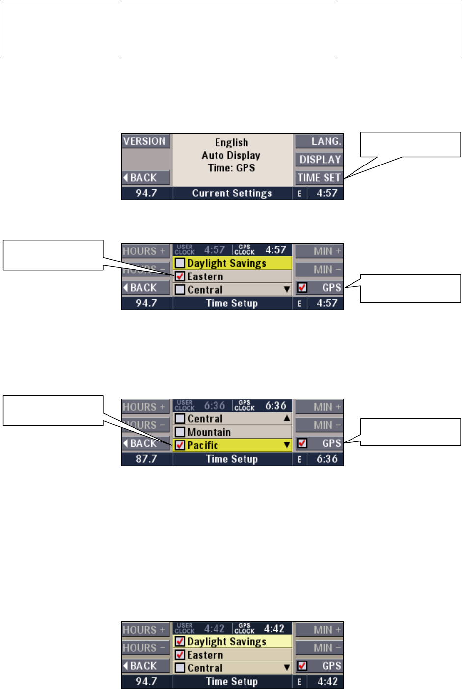 Press the TIME SET multifunction button to access the Time Setup Menu.