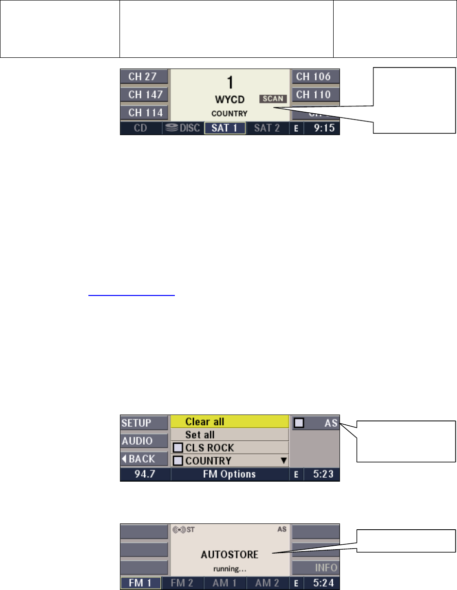 The autostore function is now scanning the selected band for the best available radio stations in your area.