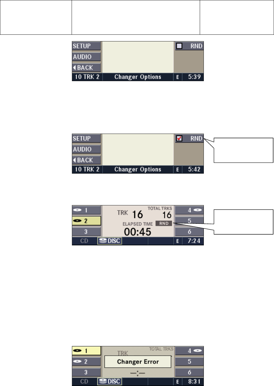 A RND symbol indicates the active Random Play function in the Changer Menu.