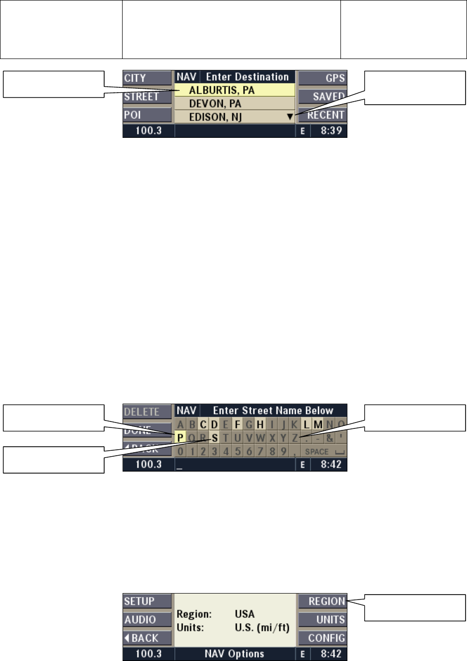 Saved: Select desti natio n f rom a l i s t of (m ax. 10 0) user s tored destin ation s .