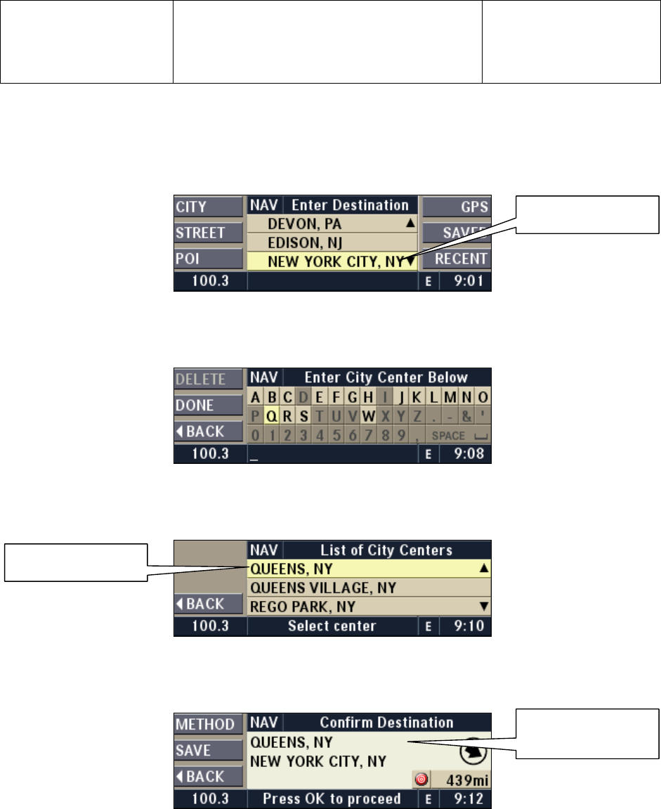 Ente r a cit y center n ame by t urning t he OK knob and press the OK kn ob in to c onfir m your s electi on.