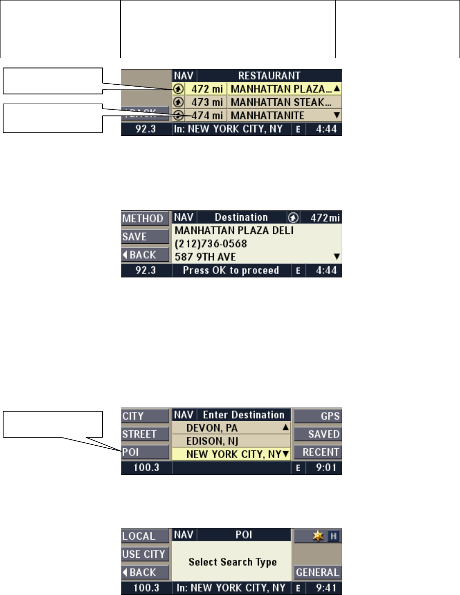 Turn the OK knob to select the desired POI, and press the OK knob in to confirm the POI.
