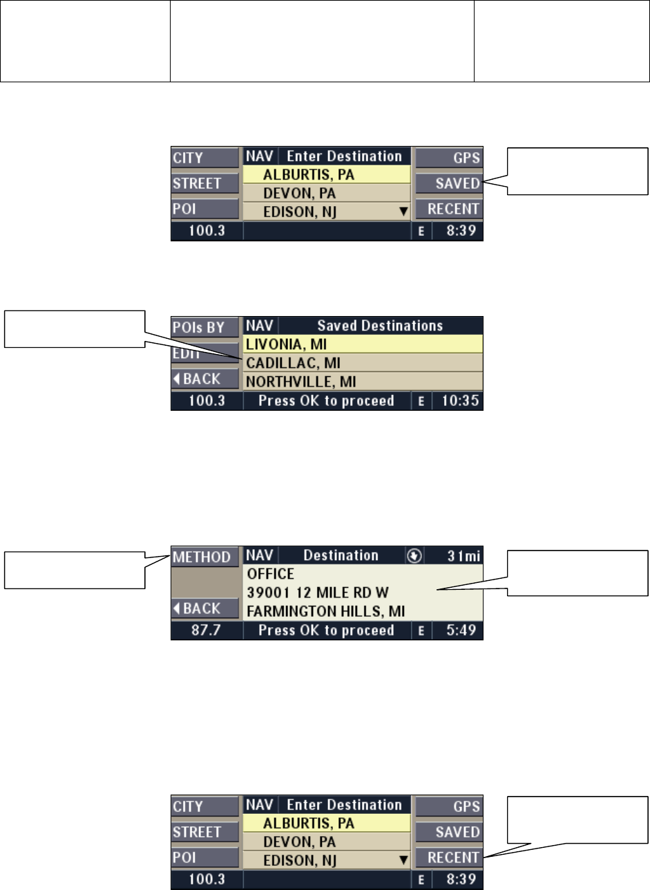Press the RECENT multifunction button to go to the Saved Destinations Menu.