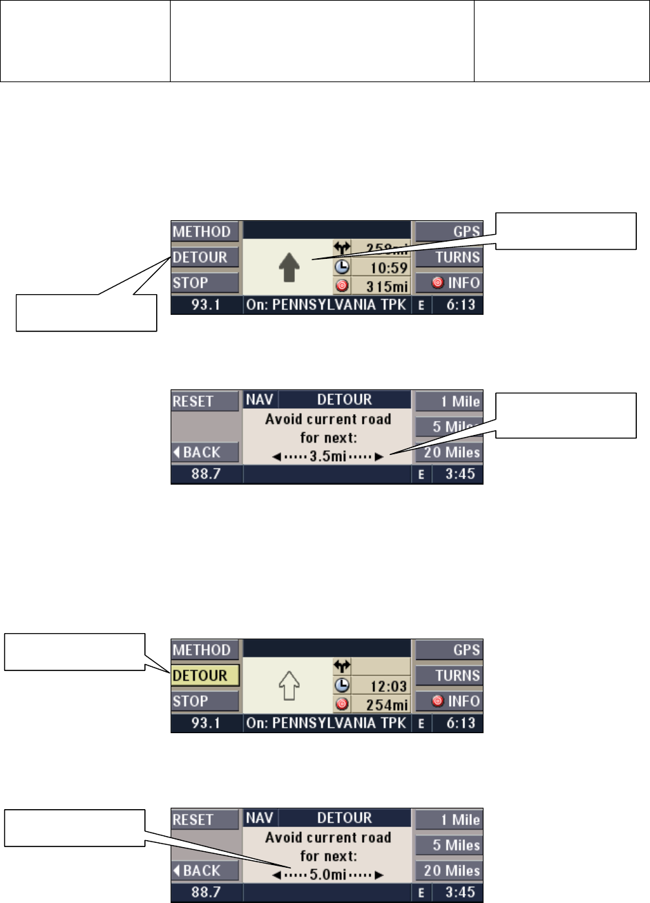 Press the DETOUR multifunction button to acc ess the Detour Menu, while the detour function is active.