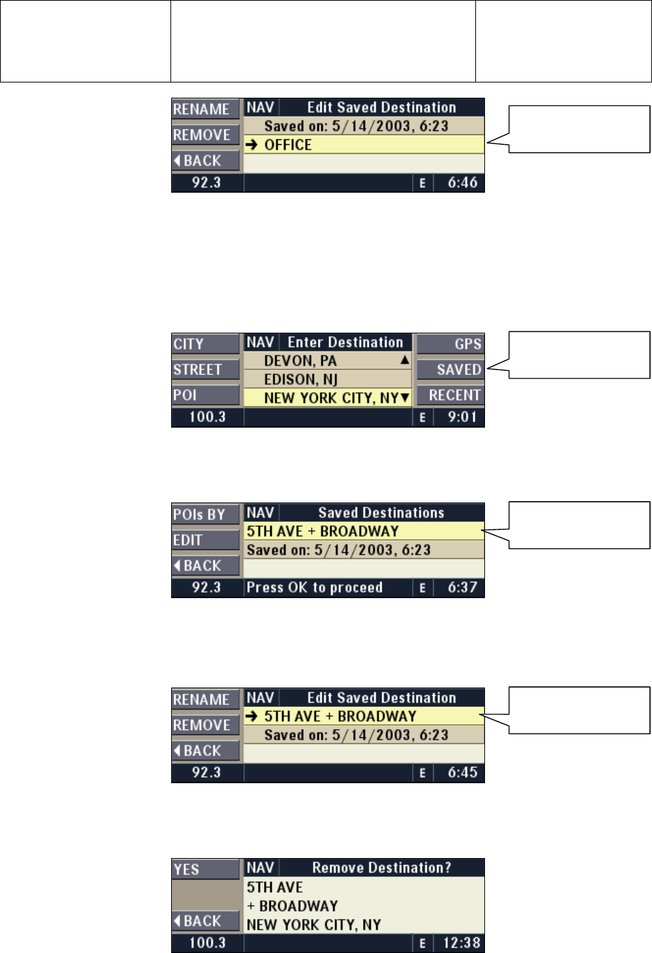 desired entry in the saved destination list.