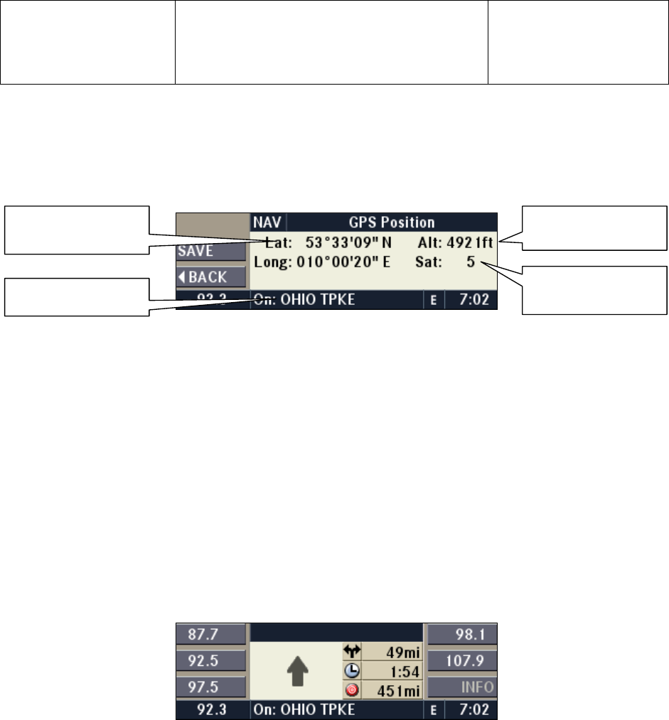 After pressing the “GPS” multifunction button in the Info Menu the following information is displayed: